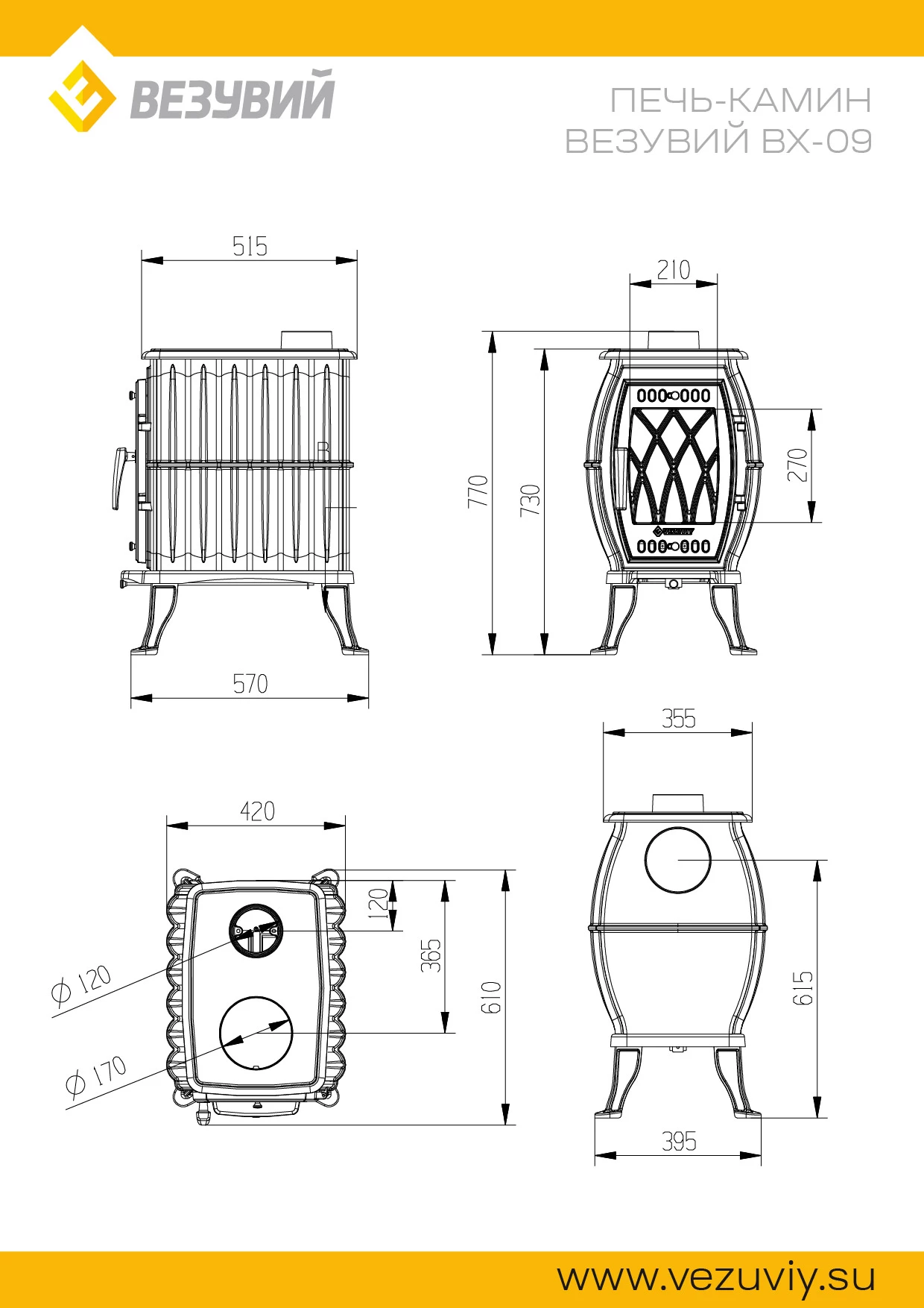 Чугунная печь Везувий ВХ-09 "Антрацит"