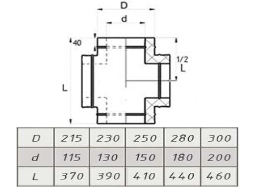 Сэндвич-четверник 115/215 мм. с заглушкой и ручкой