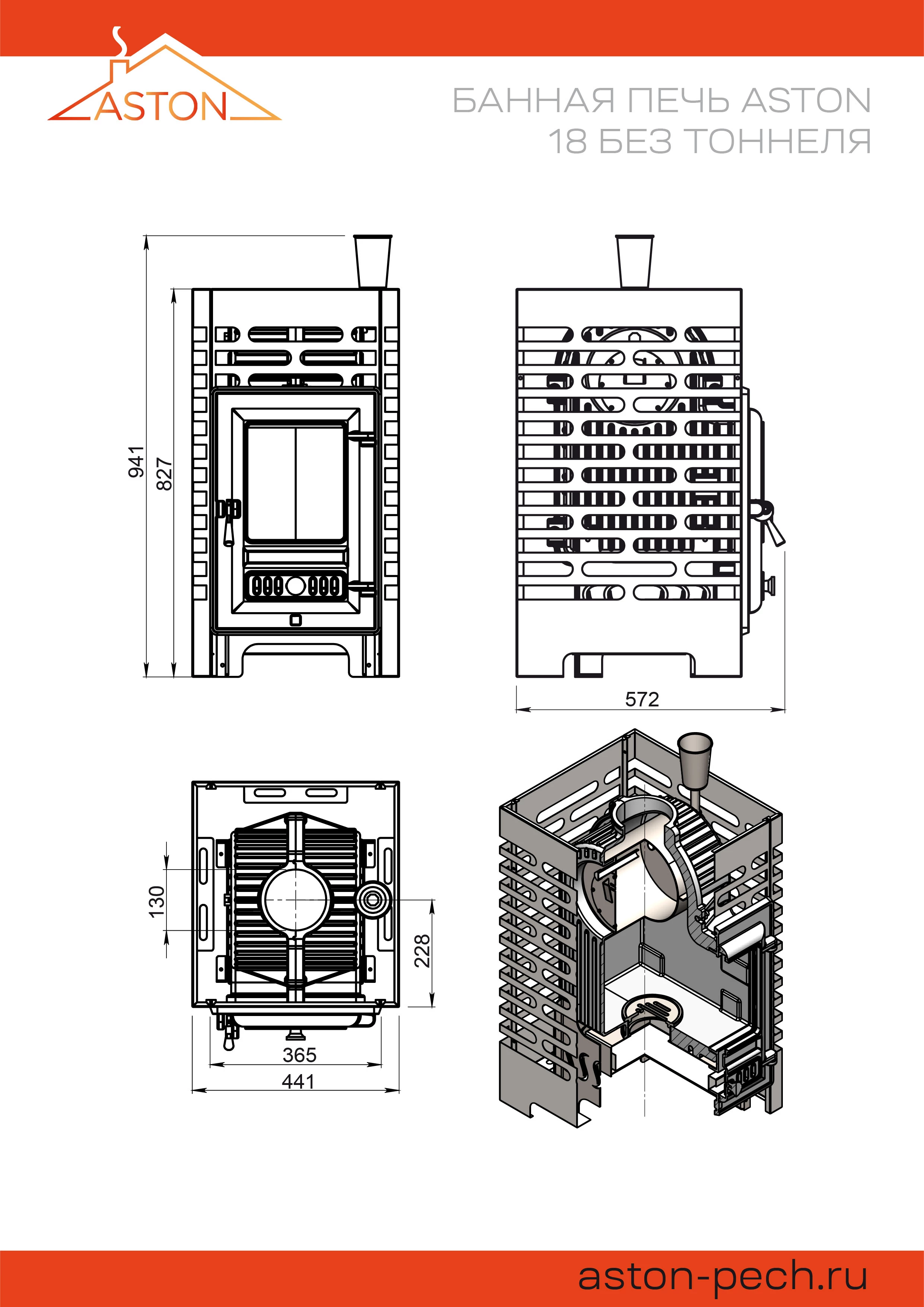 Печь для бани ЭТНА 18 (Панорама)